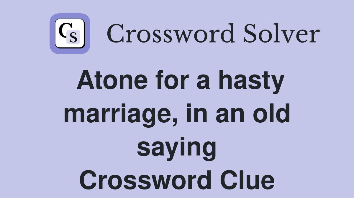 Atone for a hasty marriage in an old saying Crossword Clue Answers