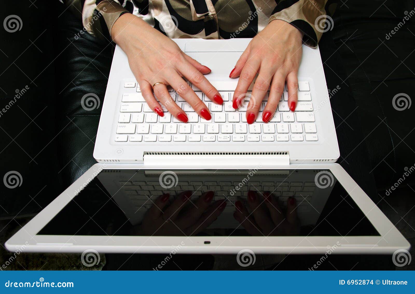 Womanish Hands on a White Laptop Stock Photo Image of people typing