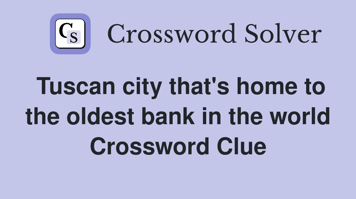 Tuscan city that #39 s home to the oldest bank in the world Crossword