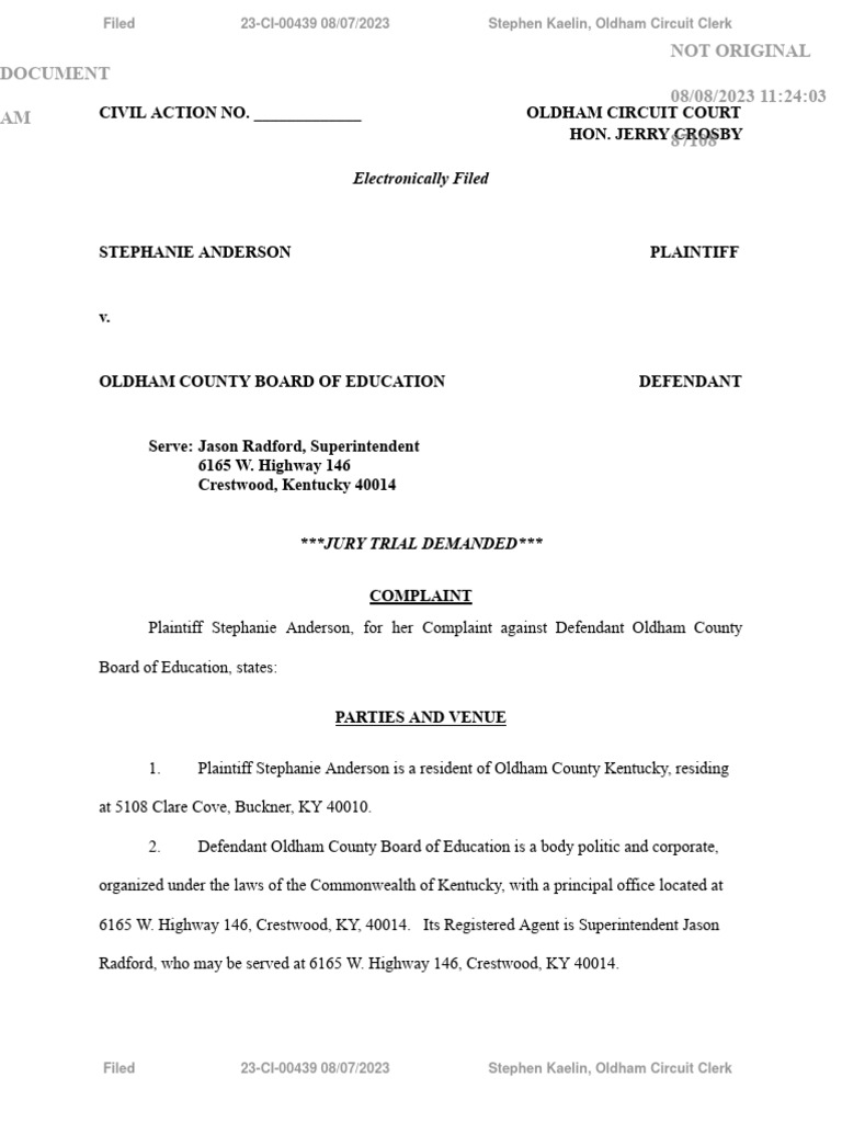 Stephanie Anderson v Oldham County Board of Education PDF Virginia