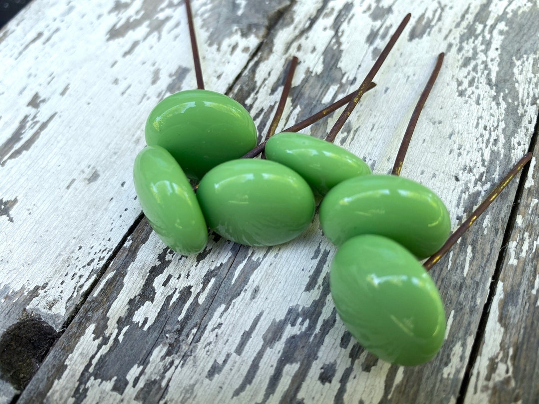 6 Lg Vintage Green Glass Pins Retro Soft Mint 2 quot Long 3/4 quot Across