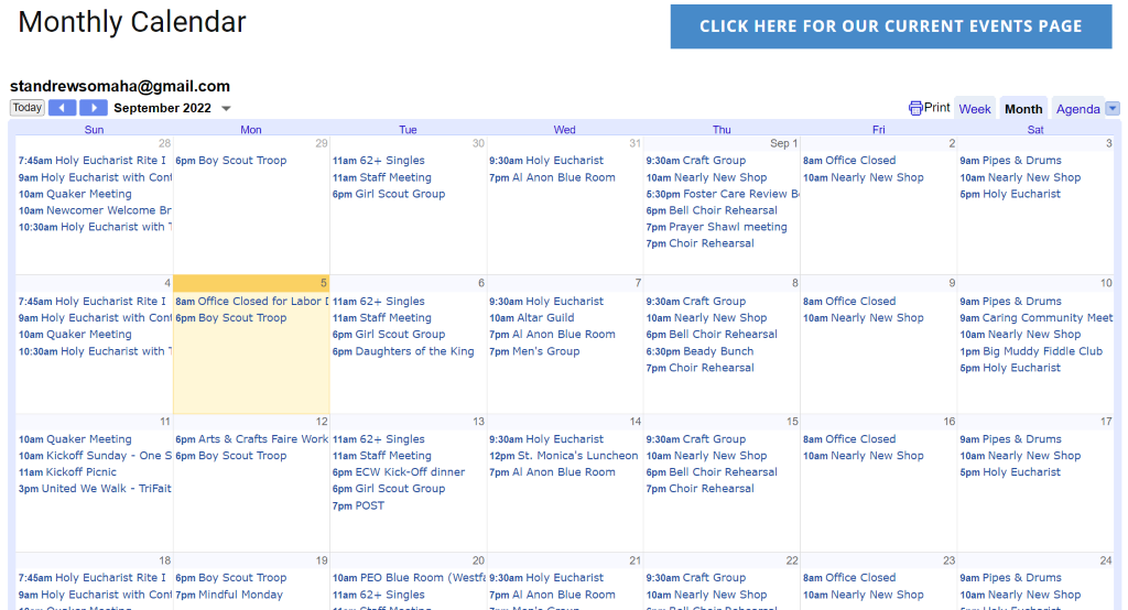 Monthly Calendar St Andrews Episcopal Church Omaha