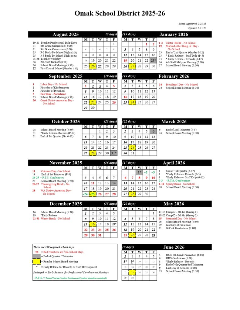 Omak School District WA Calendar 25 26 Revised PDF EduCounty