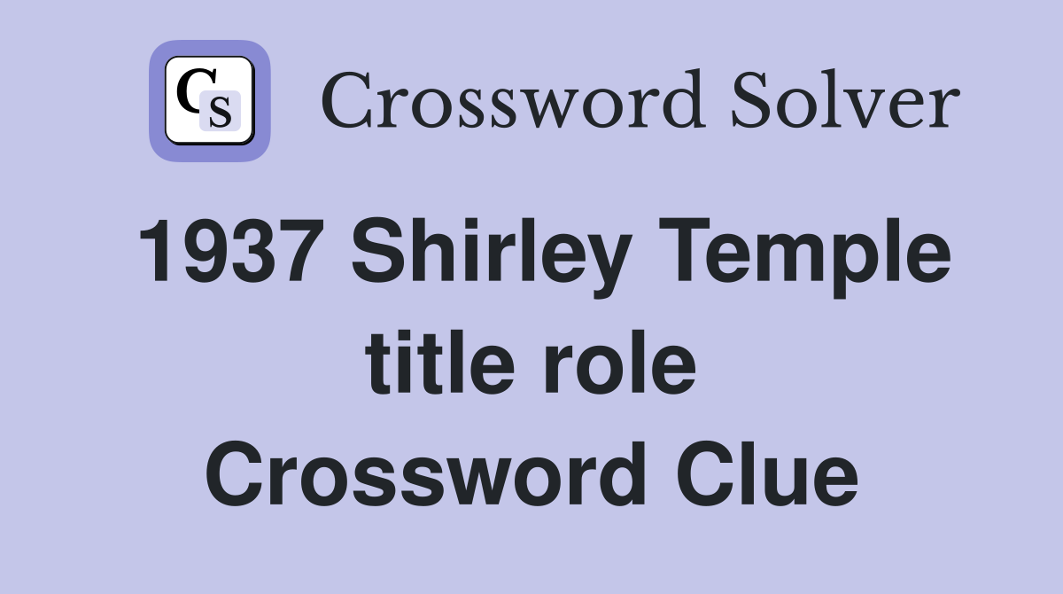 1937 Shirley Temple title role Crossword Clue Answers Crossword Solver