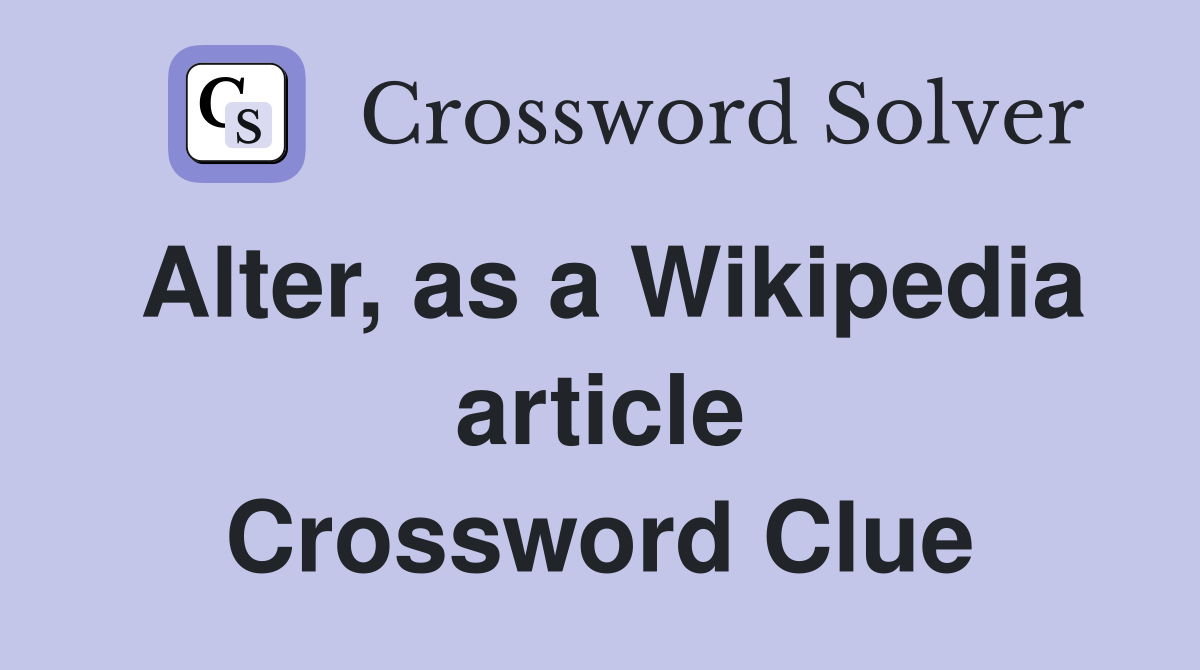 Alter as a Wikipedia article Crossword Clue Answers Crossword Solver