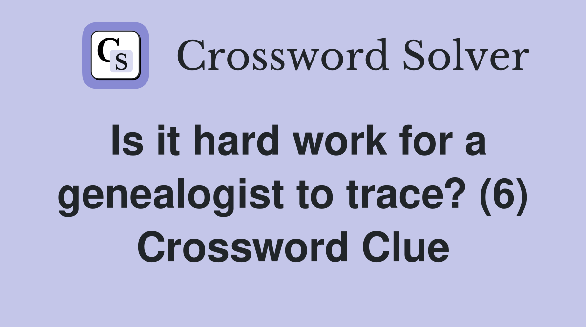 Is it hard work for a genealogist to trace? (6) Crossword Clue