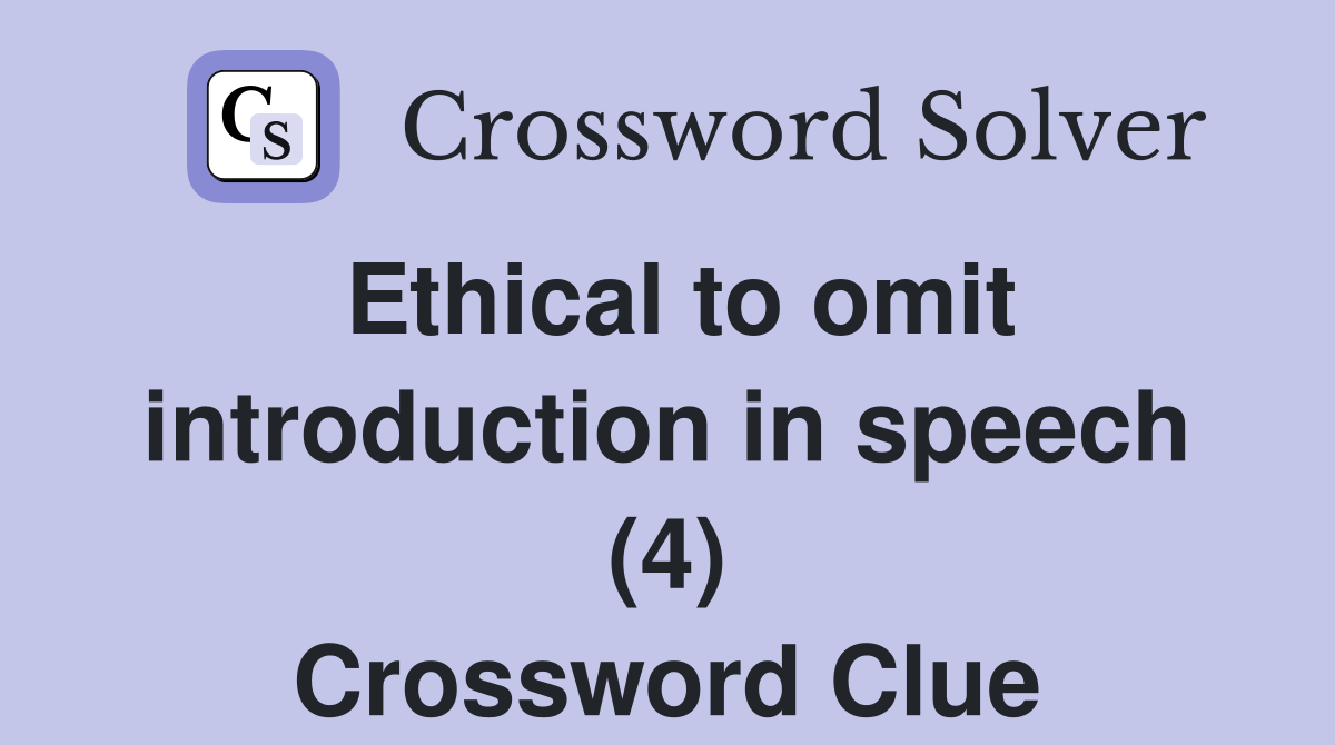 Ethical to omit introduction in speech (4) Crossword Clue Answers