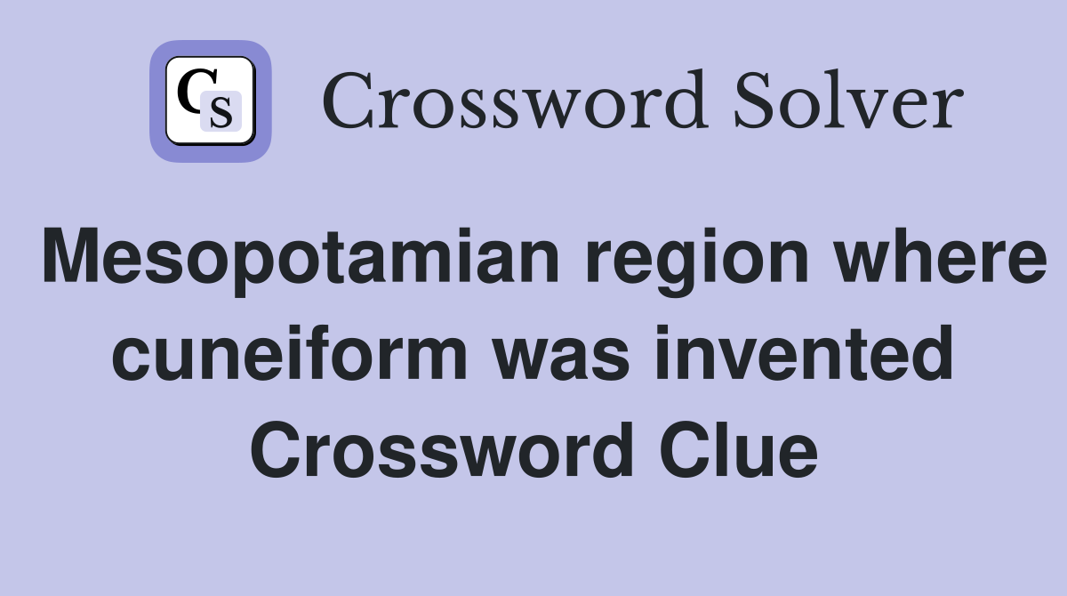 Mesopotamian region where cuneiform was invented Crossword Clue