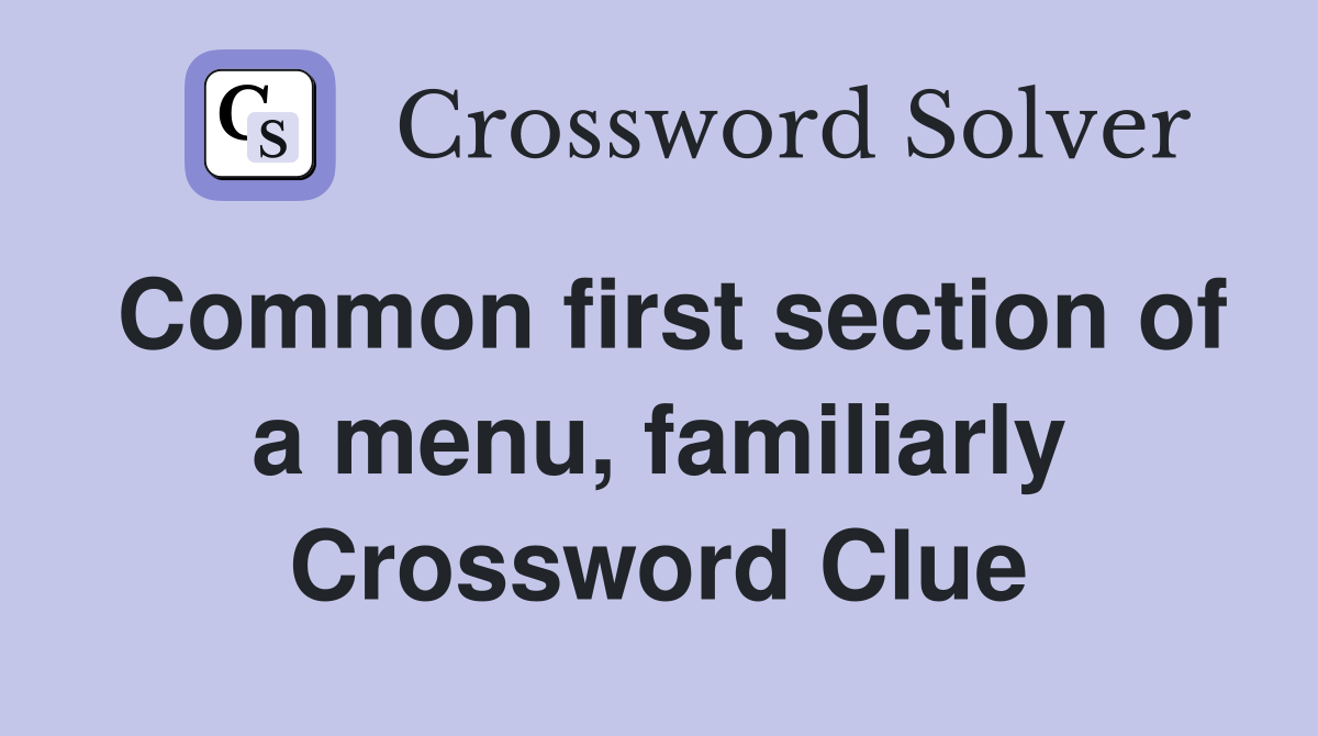 Common first section of a menu familiarly Crossword Clue Answers