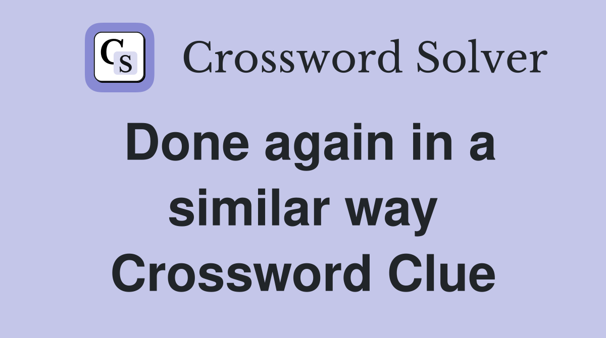 Done again in a similar way Crossword Clue Answers Crossword Solver