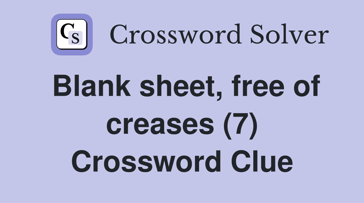 Blank sheet free of creases (7) Crossword Clue Answers Crossword