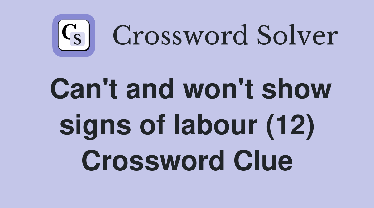 Can #39 t and won #39 t show signs of labour (12) Crossword Clue Answers