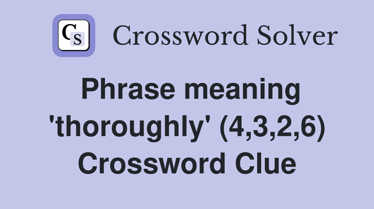 Phrase meaning #39 thoroughly #39 (4 3 2 6) Crossword Clue Answers