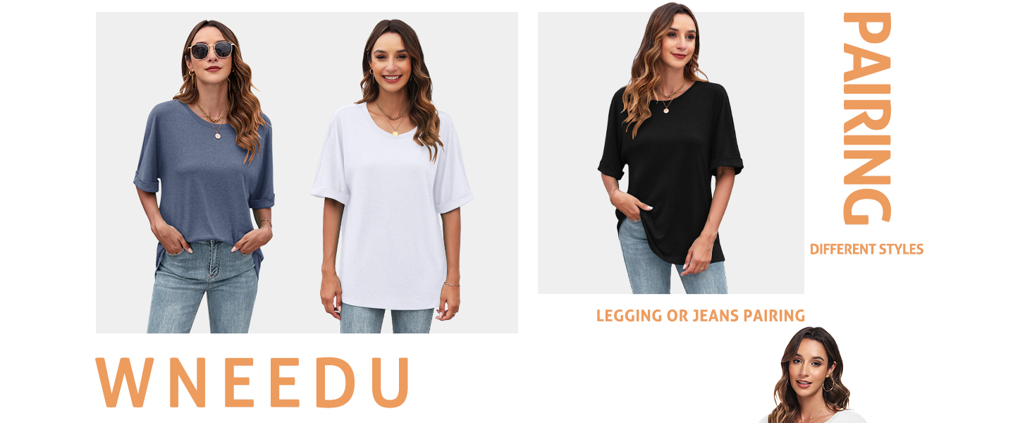 WNEEDU Oversize Shirt Damen Kurzarm Rundhals Oberteile Damen Sommer