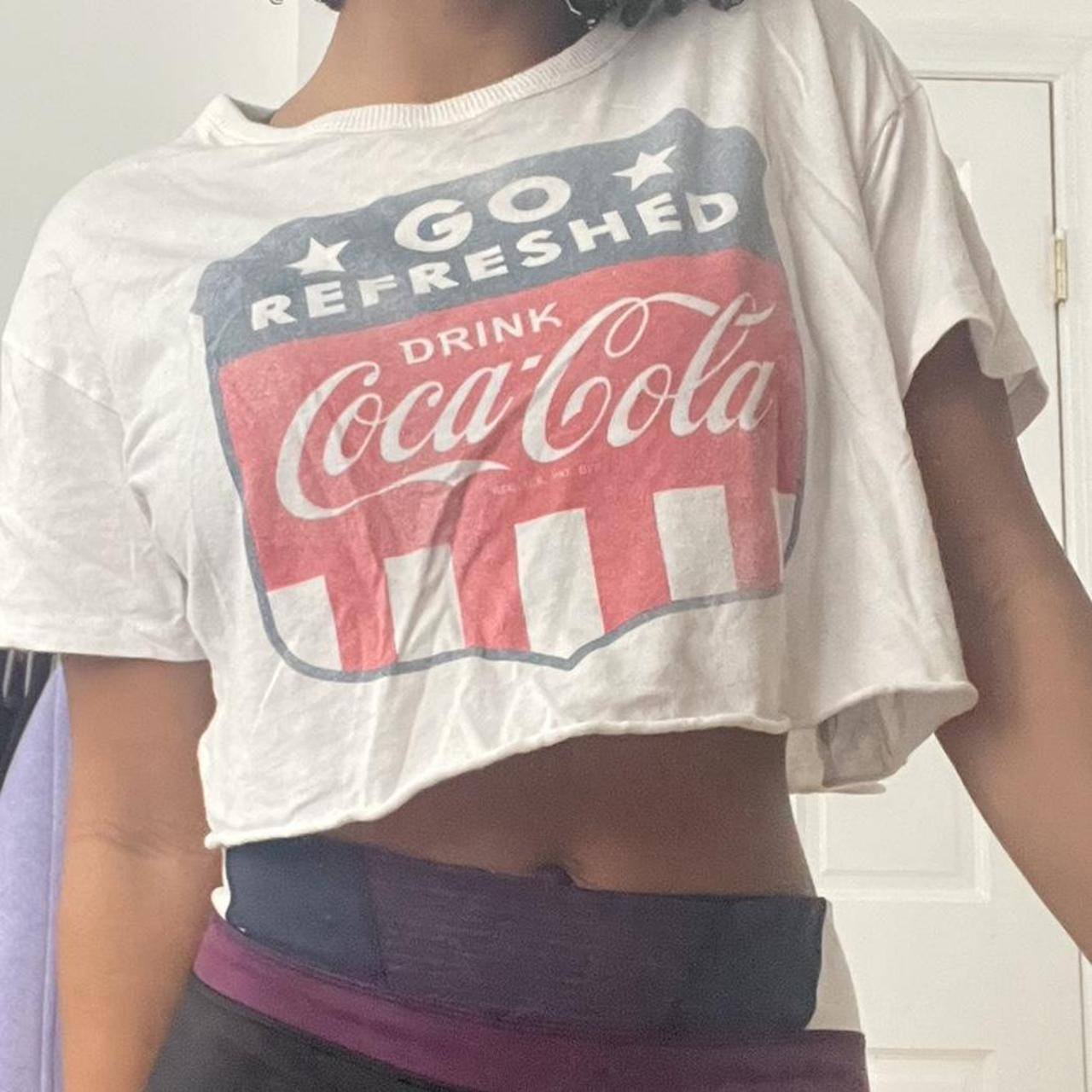 Coca Cola Women #39 s White and Blue Crop top Depop
