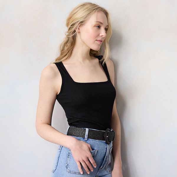 Women #39 s LC Lauren Conrad Fitted Squareneck Tank Top