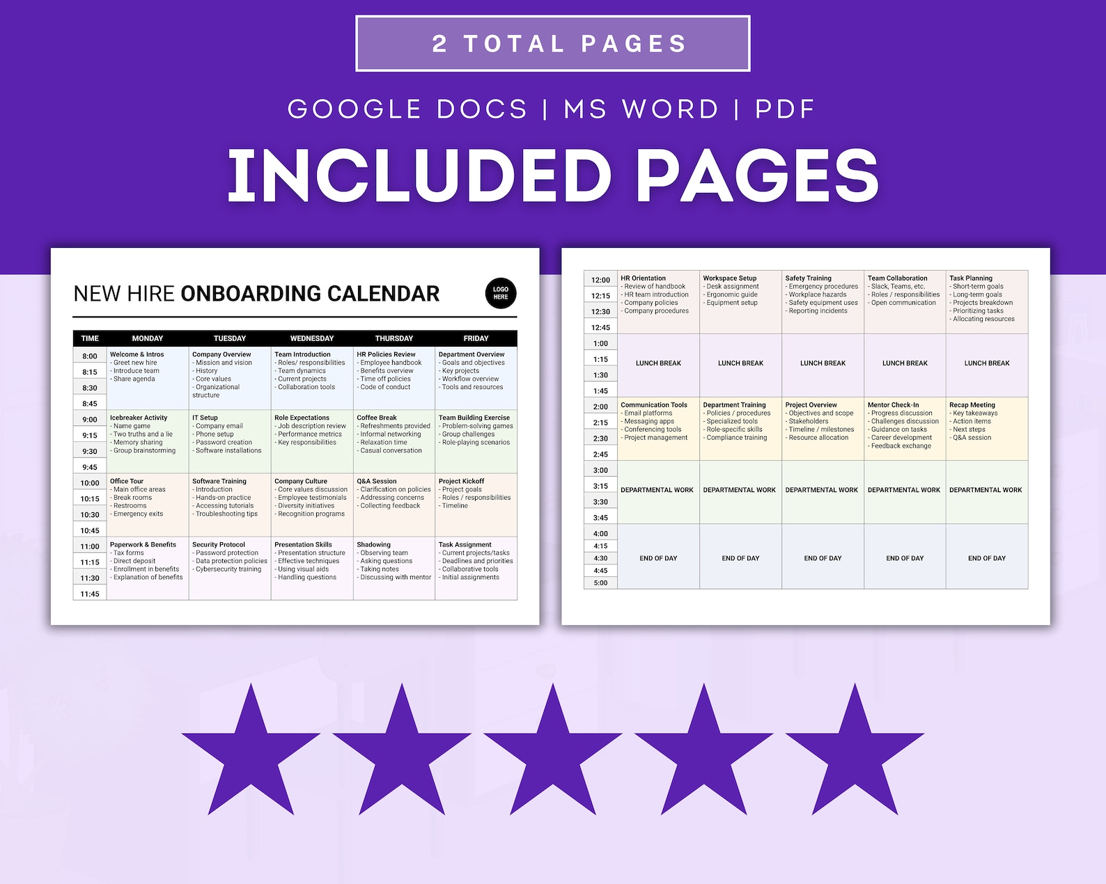 New Hire Onboarding Schedule / Agenda Template Editable Word HR Form