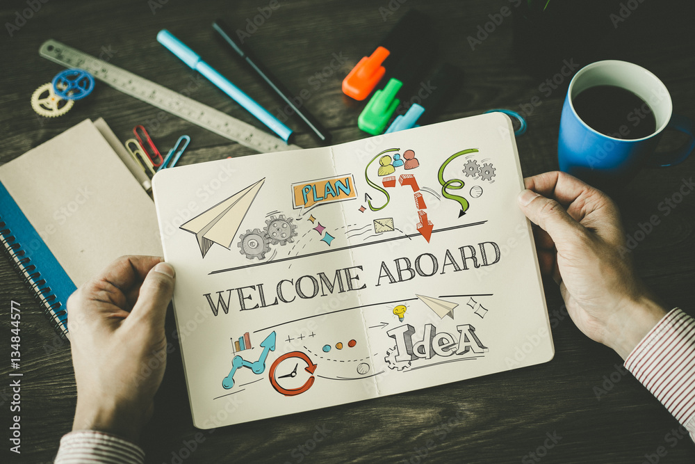 WELCOME ABOARD sketch on notebook Stock Photo Adobe Stock