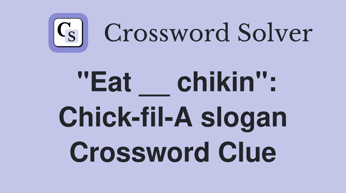 quot Eat chikin quot :fil A slogan Crossword Clue Answers