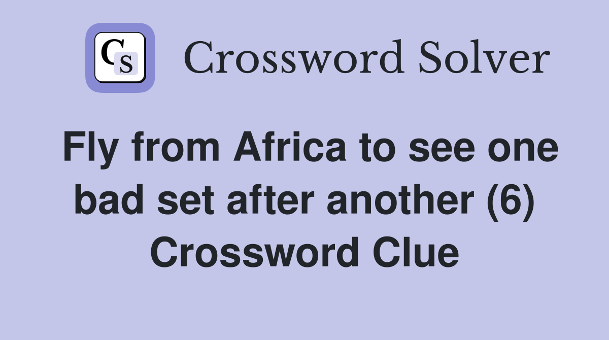 Fly from Africa to see one bad set after another (6) Crossword Clue