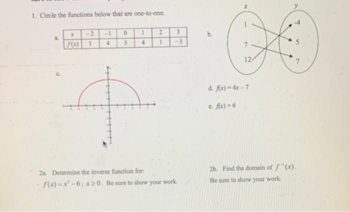 Solved 1 Circle the functions below that are one to one b Chegg com
