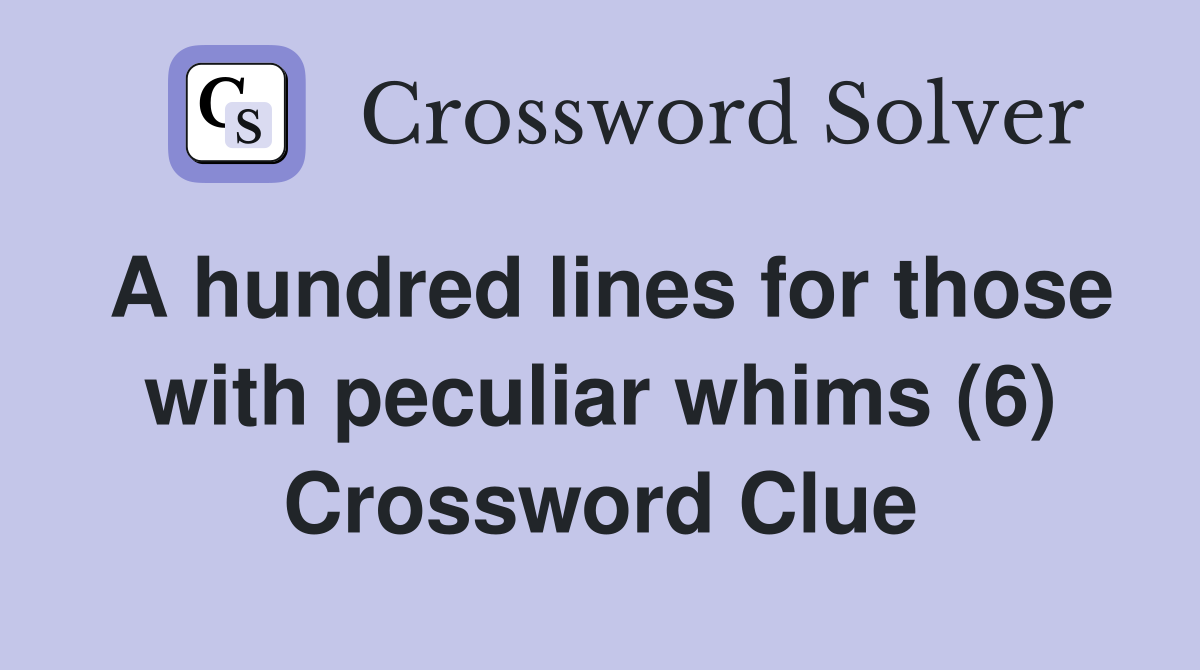 A hundred lines for those with peculiar whims (6) Crossword Clue