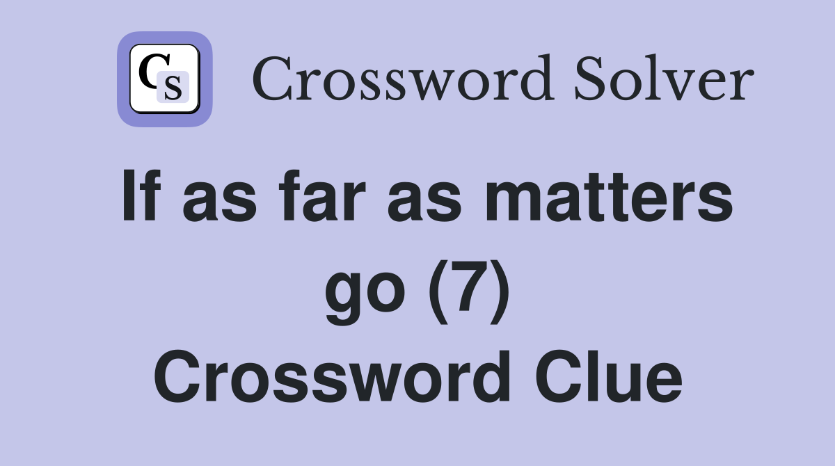 If as far as matters go (7) Crossword Clue Answers Crossword Solver