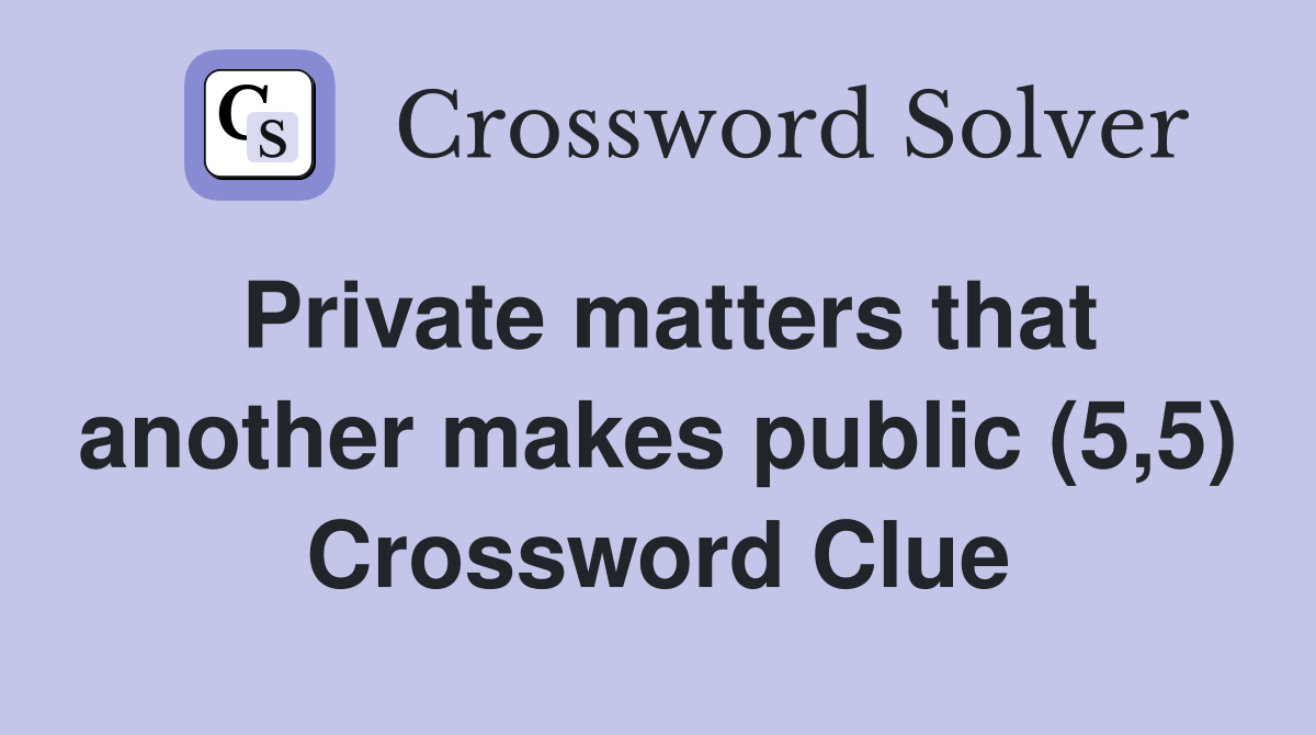Private matters that another makes public (5 5) Crossword Clue