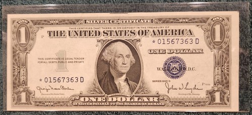 $1 Silver Certificate 1935 D STAR Note SN * 01567363 D One Dollar Bill