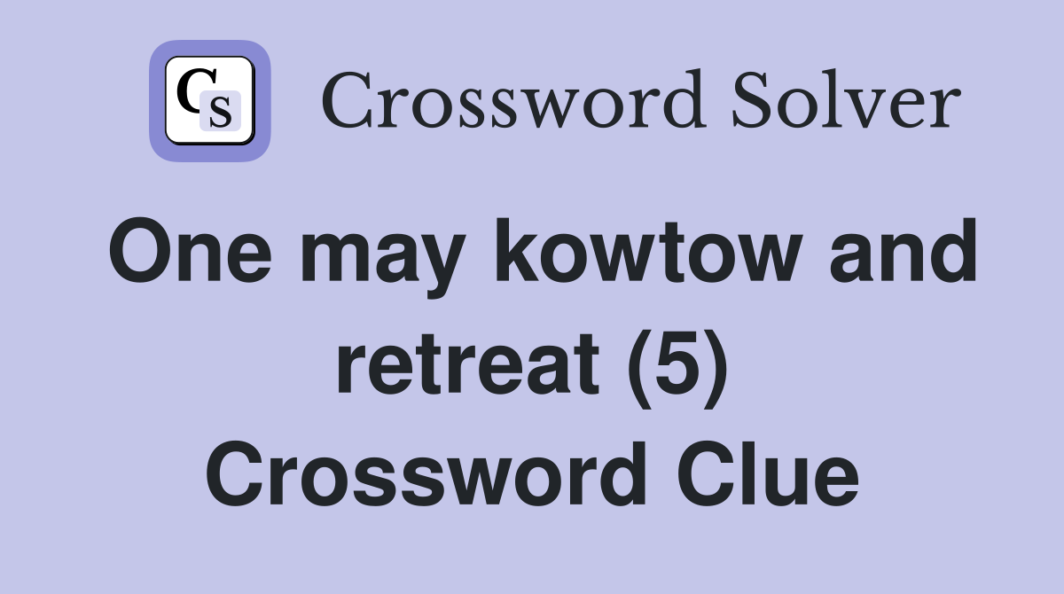 One may kowtow and retreat (5) Crossword Clue Answers Crossword Solver