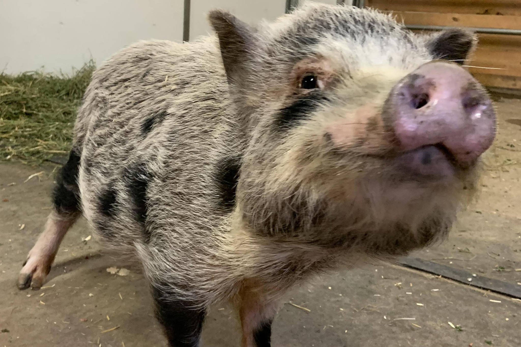 Woman Carrying Pig Lacking Tail And Hair Crossword Clue