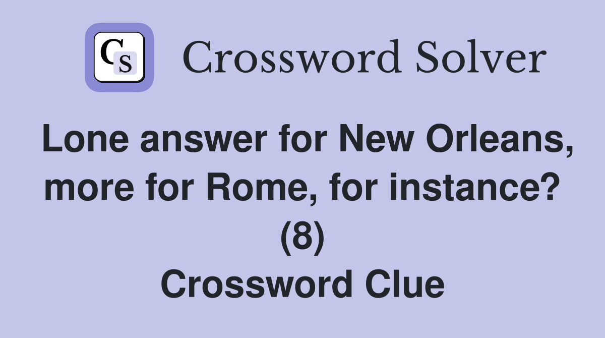 Lone answer for New Orleans more for Rome for instance? (8