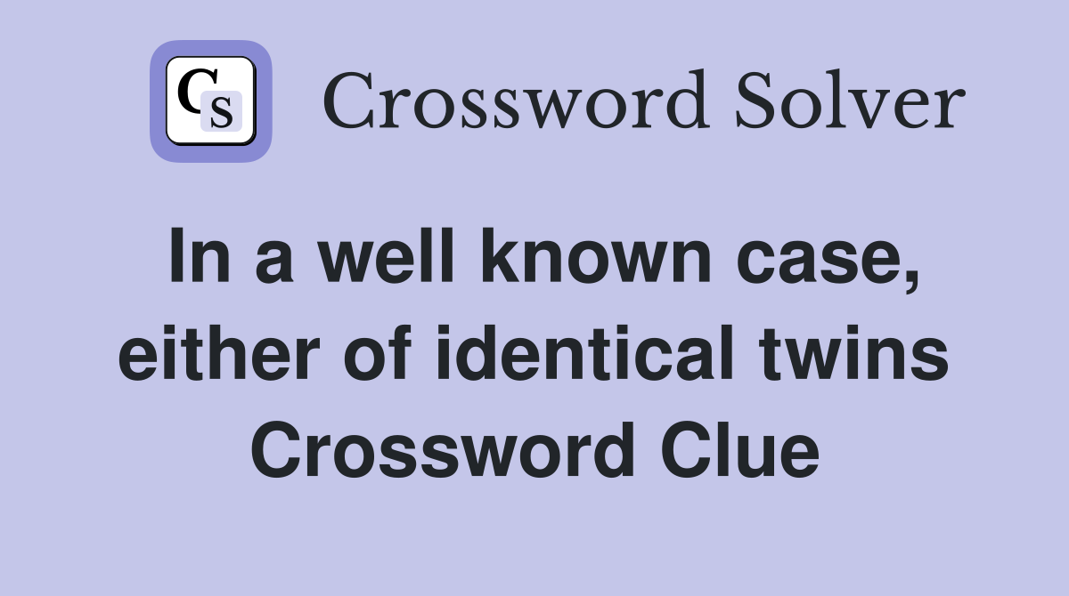 In a well known case either of identical twins Crossword Clue