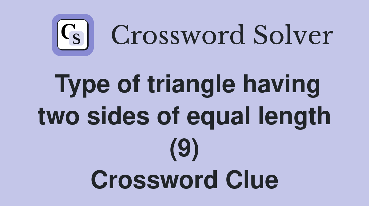 Type of triangle having two sides of equal length (9) Crossword Clue