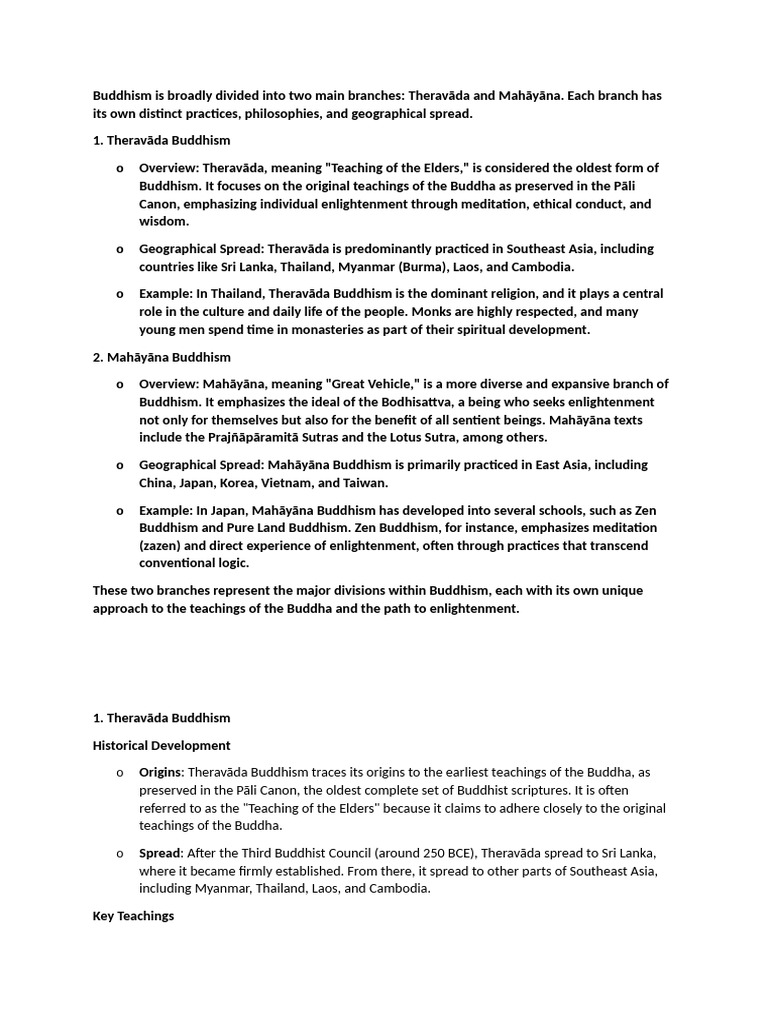 Major Branches of Buddhism Theravada The path of