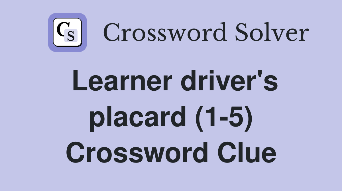 Learner driver #39 s placard (1 5) Crossword Clue Answers Crossword Solver