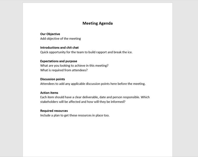 Free One Page Sales Meeting Agenda Template to Edit Online