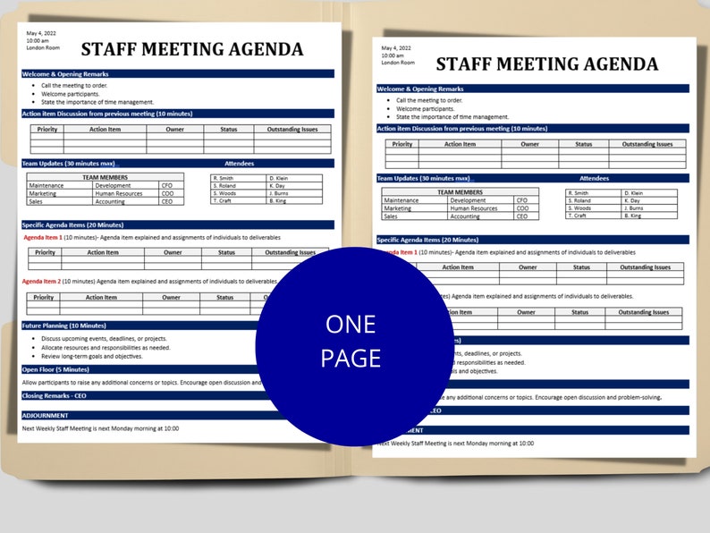 One on One Meeting Template for Word and Google Docs Staff Meeting