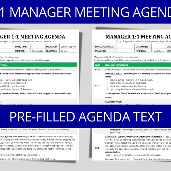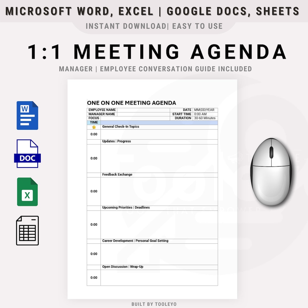 1 on 1 Manager Meeting Agenda Template (google Docs MS Word) Etsy