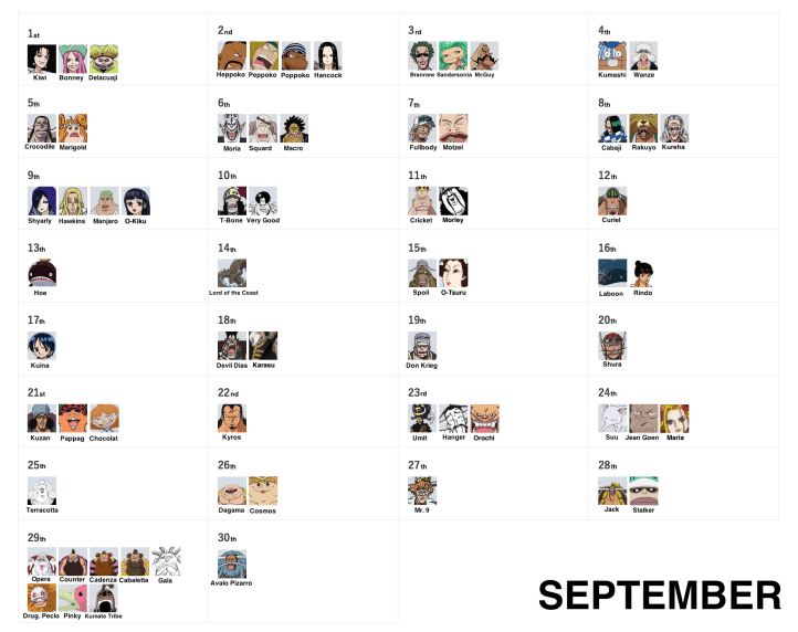 One Piece Birthday Calendar by lonerpx on DeviantArt
