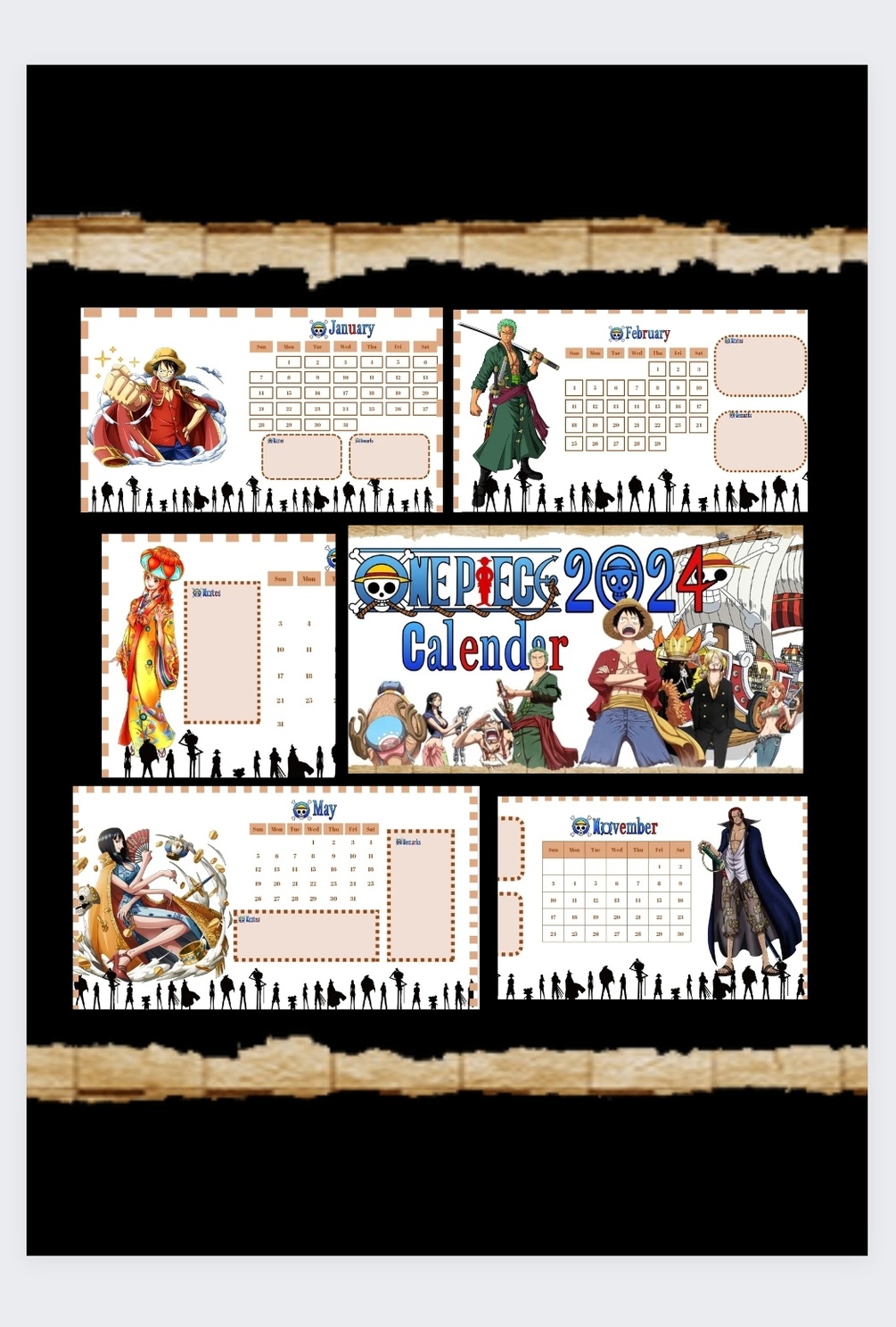 2024 One Piece Calendar Printable Calendar Anime Calendar Digital