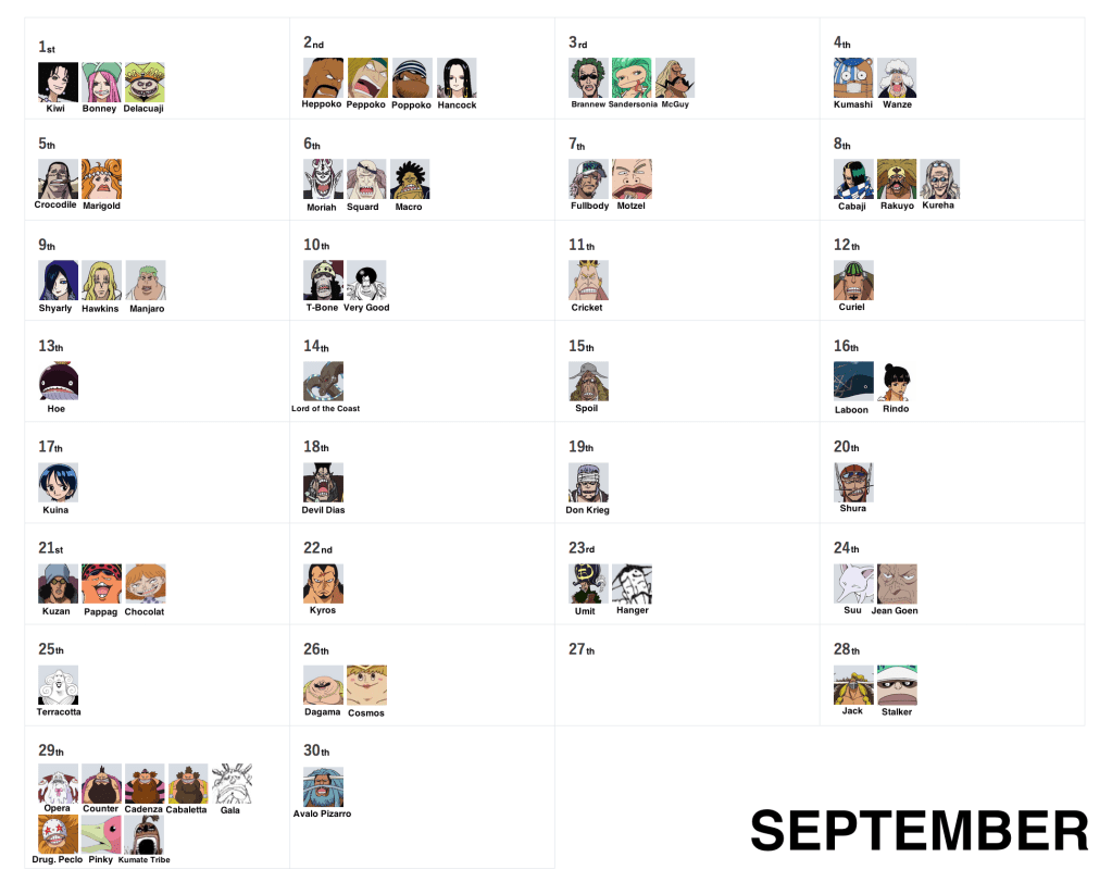 One Piece Birthday Calendar by lonerpx on DeviantArt