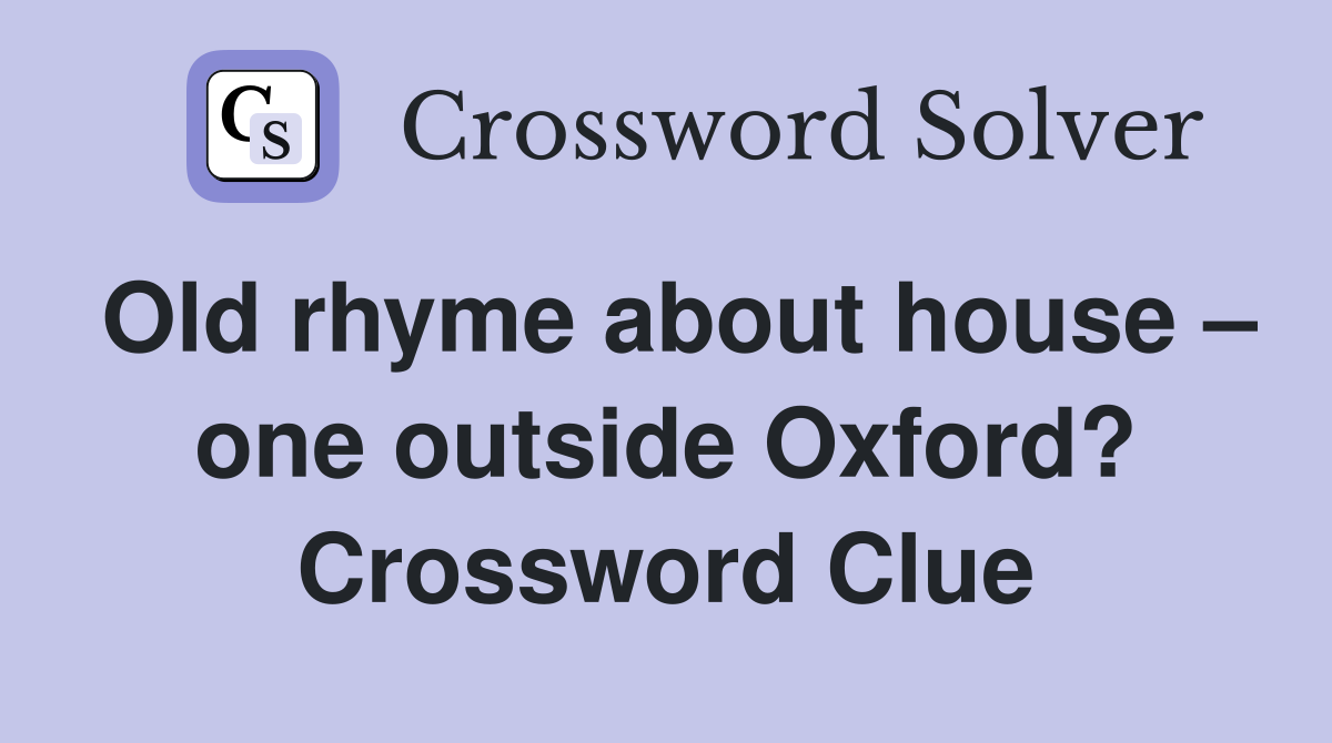 Old rhyme about house one outside Oxford? Crossword Clue Answers