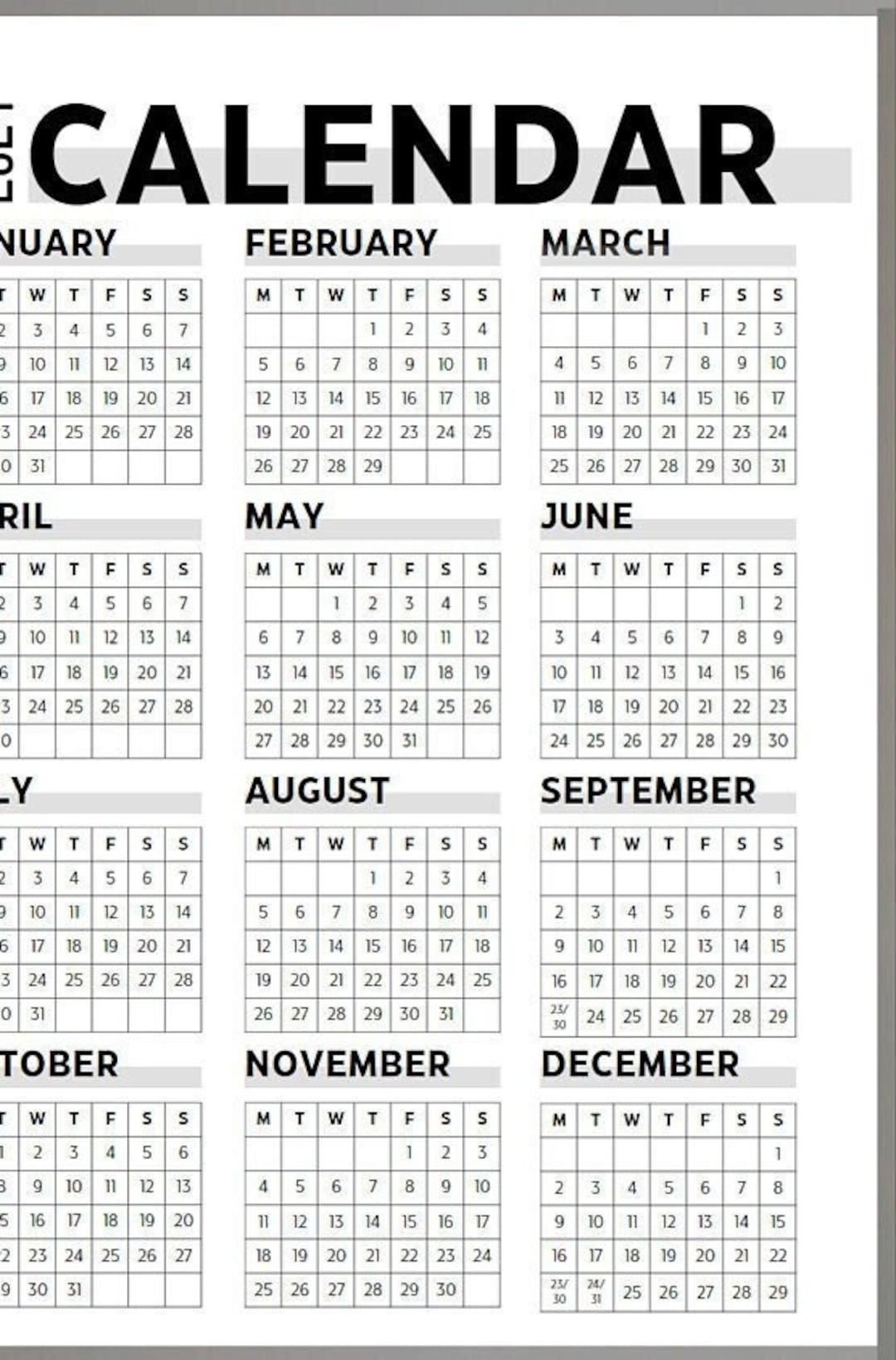 2022 2023 Year at a Glance Calendar With Notes Printable Letter Size