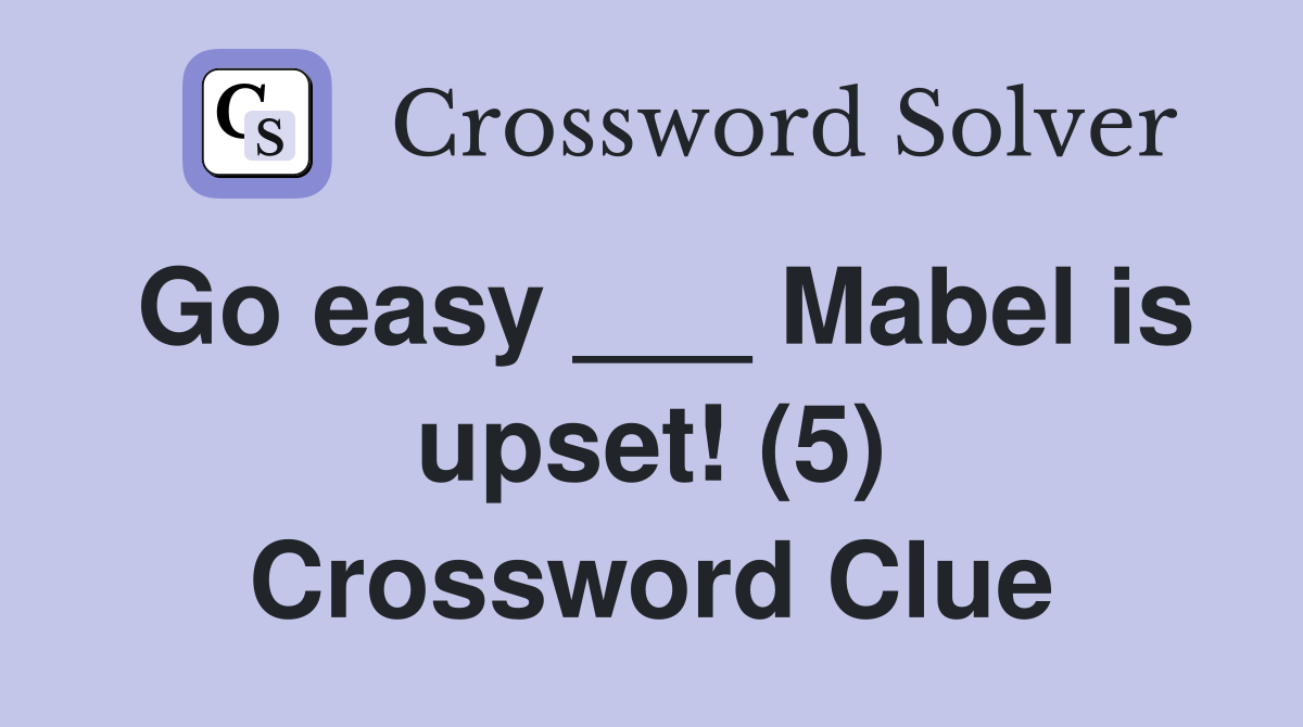 Go easy Mabel is upset (5) Crossword Clue Answers Crossword Solver