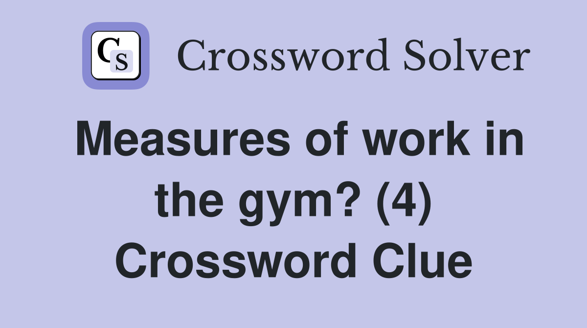 Measures of work in the gym? (4) Crossword Clue Answers Crossword