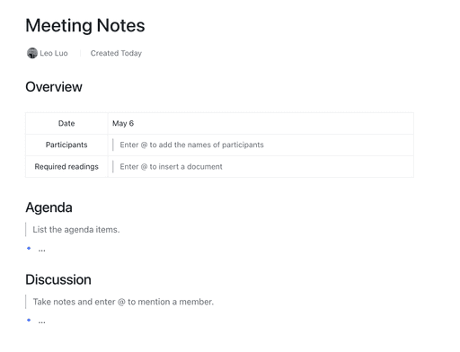 Onenote TEAM Meeting Template for Work Professionals Meeting Notes