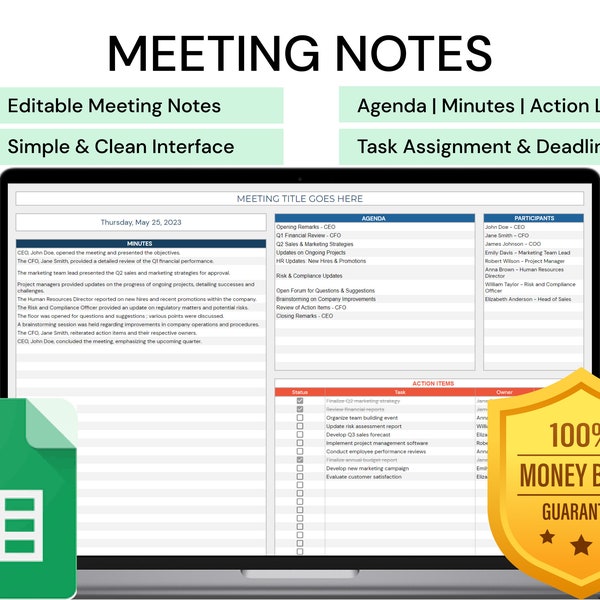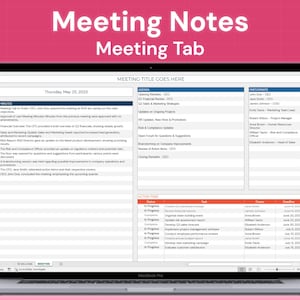 Meeting Notes Excel Template Agenda Minutes Action List Etsy