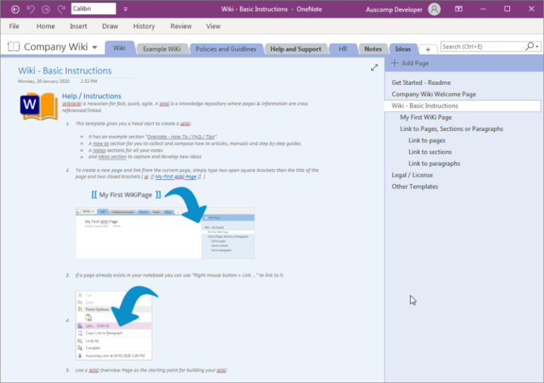 Company Wiki for OneNote