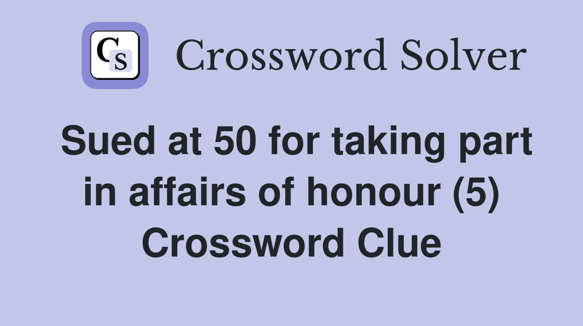 Sued at 50 for taking part in affairs of honour (5) Crossword Clue